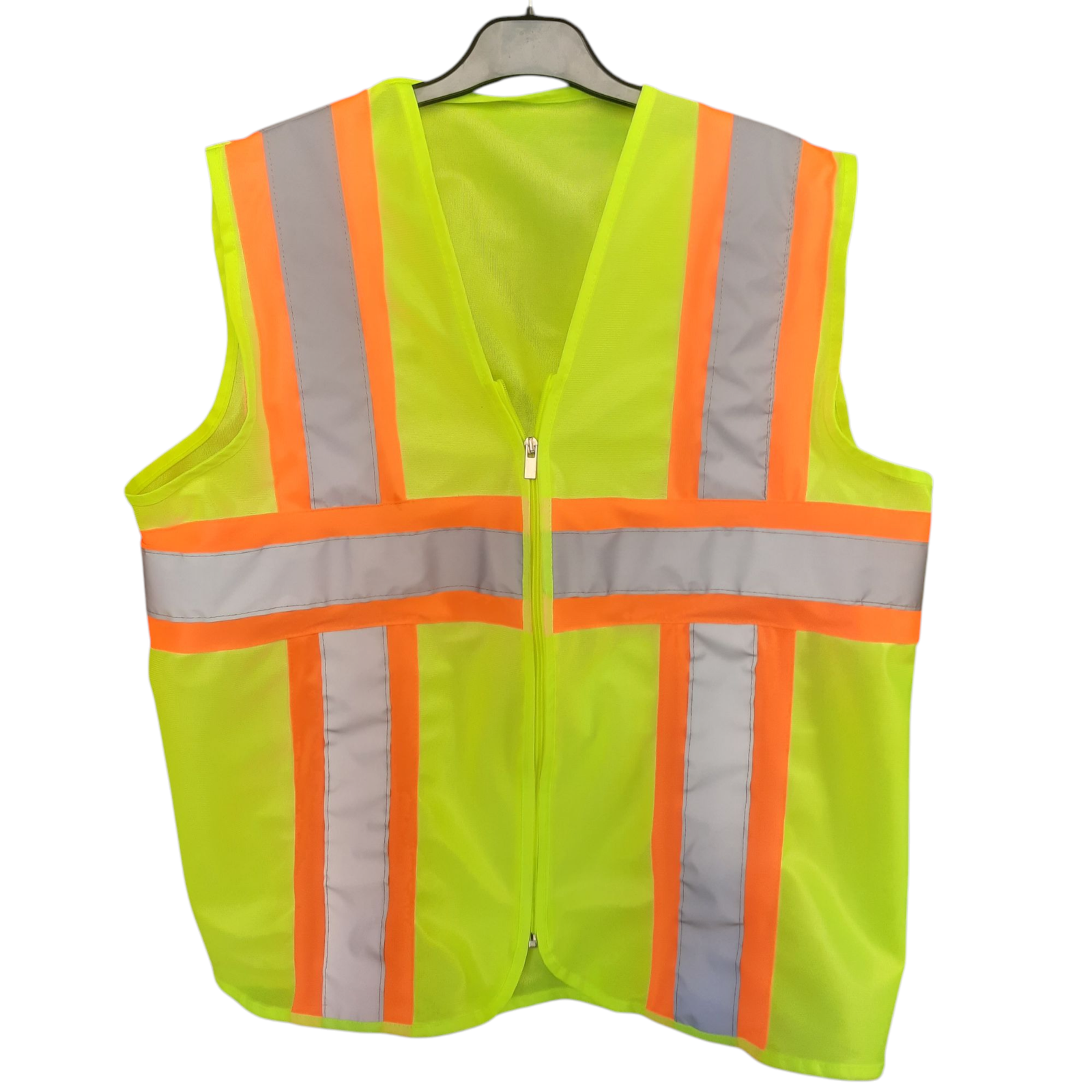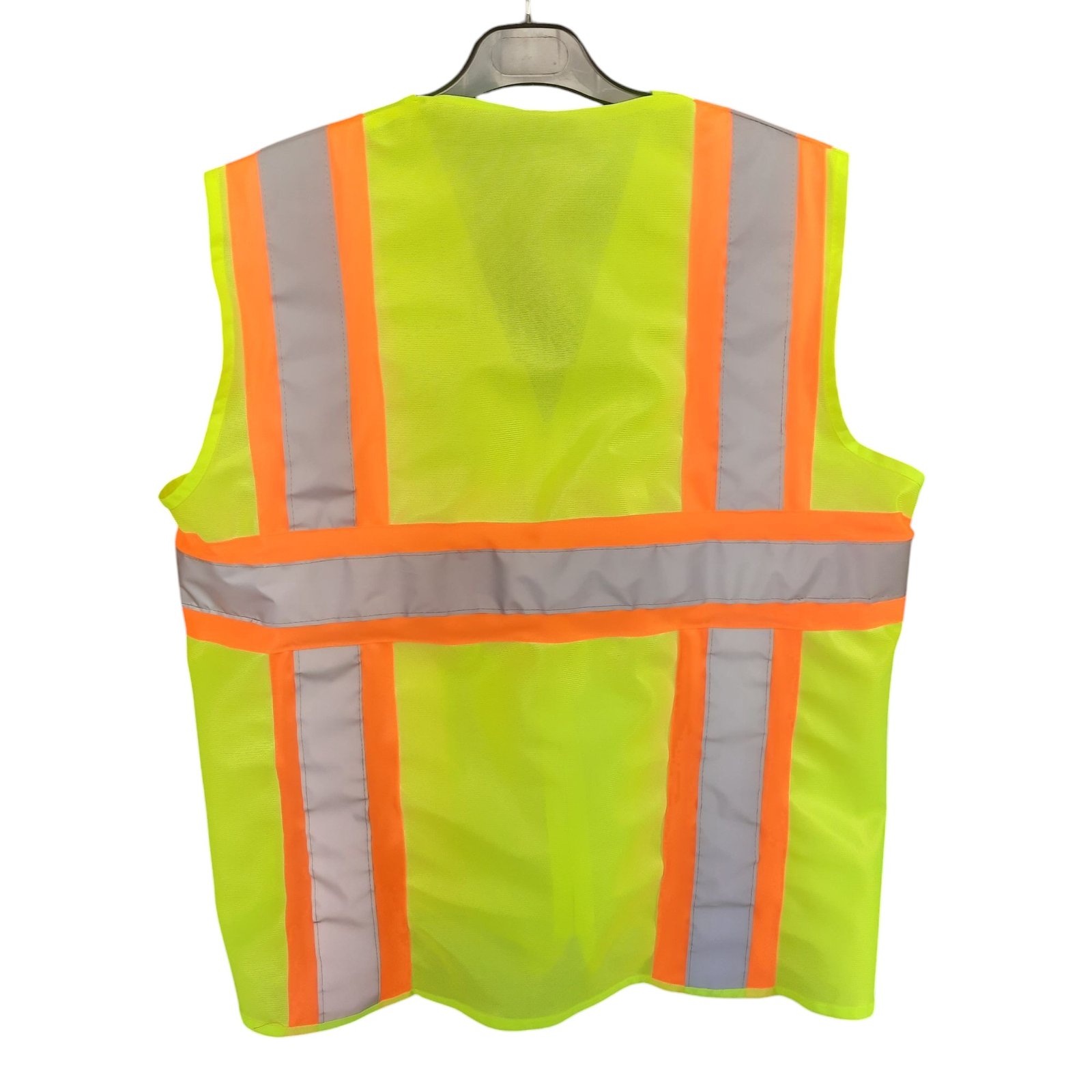Fosforlu Yelek üzerinde 10 cm şerit turuncu renk polyester fosforlu kumaş kuşak üzerine 5 cm reflektif şeritler eklenmiştir.